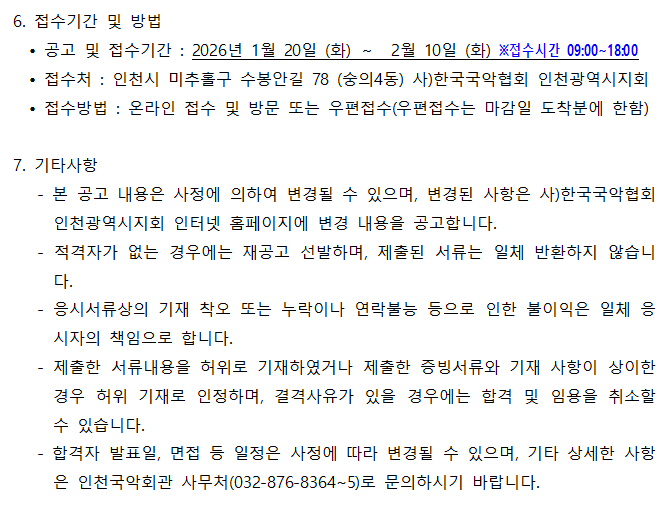[채용공고] 인천국악회관 기간제 사원 채용 공고